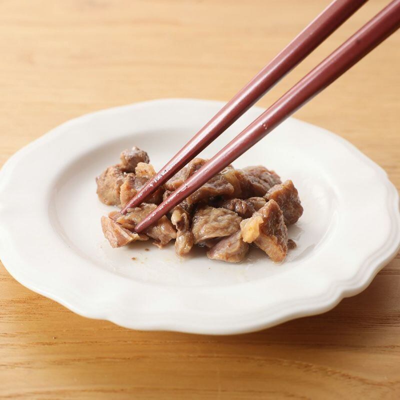 モモもカタも筋肉が発達した赤身の部位で、タンパク質やミネラル(ヘム鉄や亜鉛など)が豊富です。食べやすいひと口サイズで、お箸で簡単にほどける柔らかさ。良質なタンパク質の手軽な補給源にぴったりです。