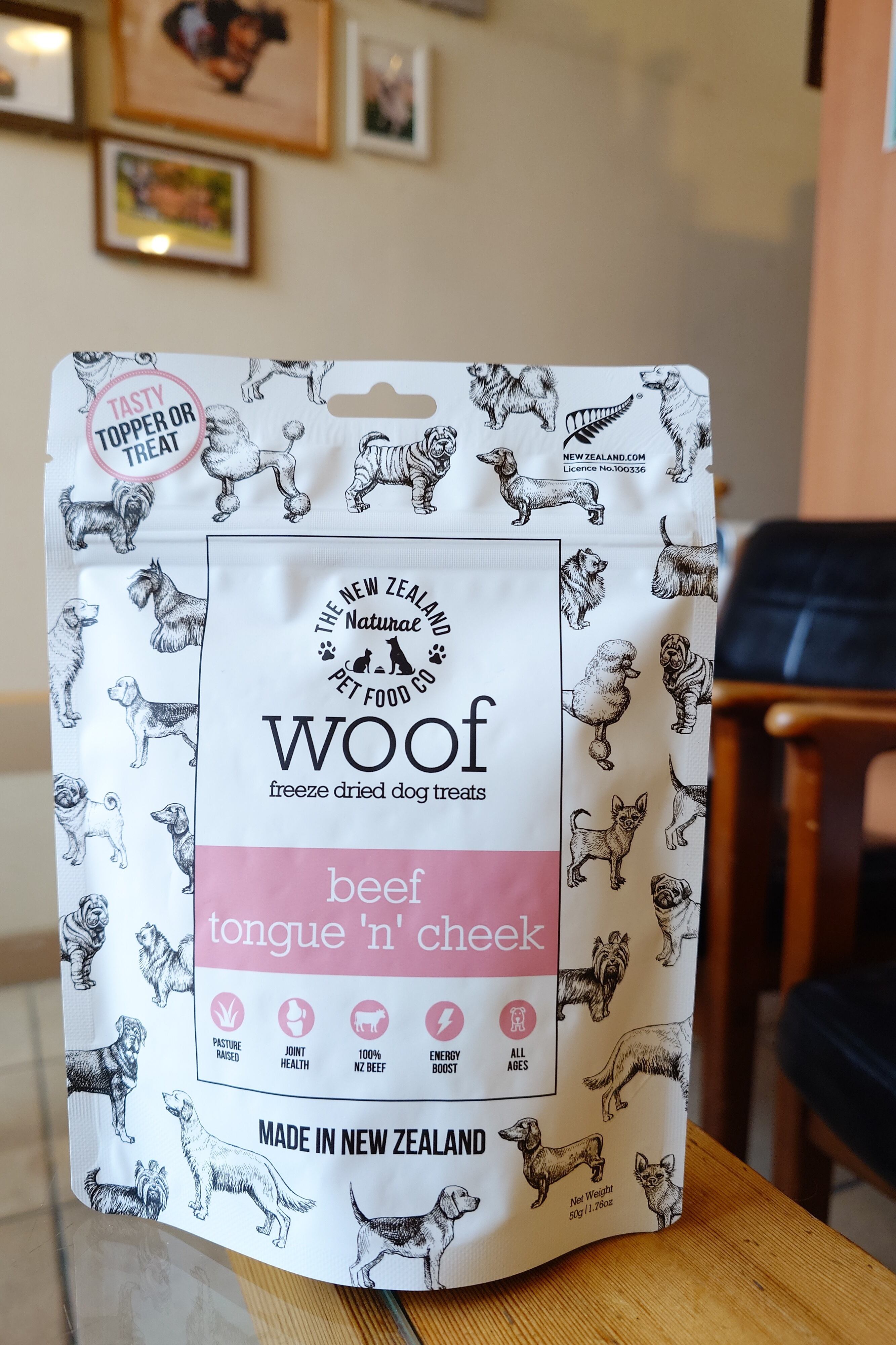 牛タンには、皮膚被毛の健康をサポートするビタミンB2やエネルギー代謝を促進し、疲労回復効果があるナイアシンやタウリンが豊富に含まれています。 牛頬肉には、筋肉質な体を維持し関節を健康に保つコラーゲンを豊富に含んでいます。 それぞれの栄養素を損なわないようフリーズドライ製法でおやつにしました。 原材料:牛タン、牛頬肉 保証成分:たん白質30%以上、脂質55%以上、粗繊維1%以下、水分5%以下 代謝カロリー686.0kcal/100g