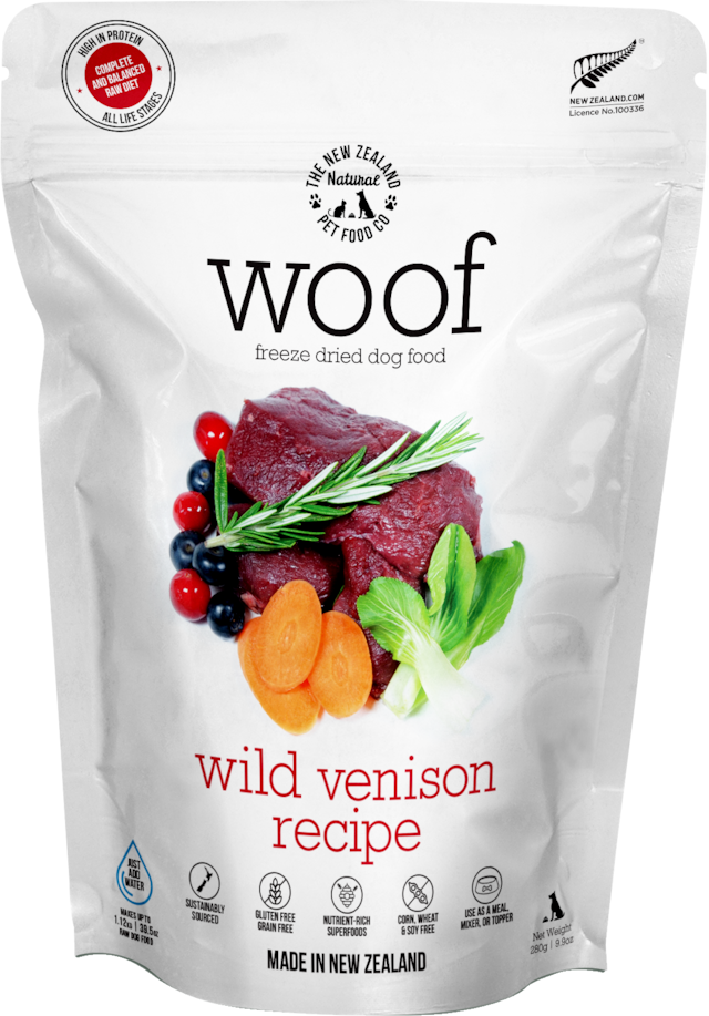 高たん白質・低カロリー・低アレルゲンな鹿肉を主原料に、各種効果を期待できるマヌカハニー、ココナッツオイル、ホキ油、緑イ貝、ケルプを配合。安心のフリーズドライ製法で作りました。